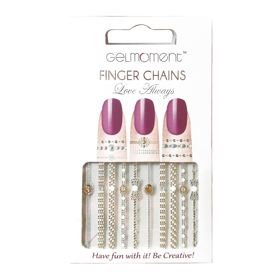 Why end the fun at your nails? Extend your creativity onto your fingers with the help of GelMoment Finger Chains. These self-adhesive "rings" draw the eye toward your beautiful GelMoment manicure. The cute stick-on finger decals can also be used to create a toe ring! Simply apply to the skin around your fingers or toes and enjoy! No glue required.